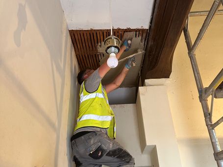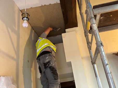 One of the most notable features of the police station is its curved ceilings. These were carefully followed and maintained throughout the restoration, ensuring the smooth, sweeping shapes remained true to the building’s age and design. Every surface was finished cleanly while keeping the original form intact.
