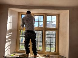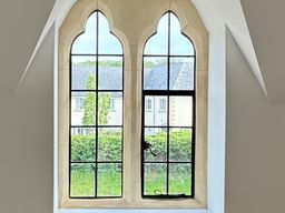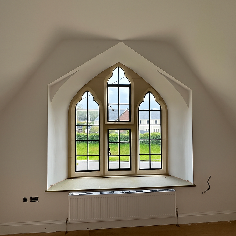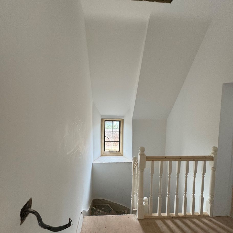 A key part of the project involved the building’s original stone-framed windows. Each window was restored entirely by hand, cleaning back the stonework, repairing worn areas, and preserving the traditional craftsmanship. The aim was not to replace the character, but to reveal it again.